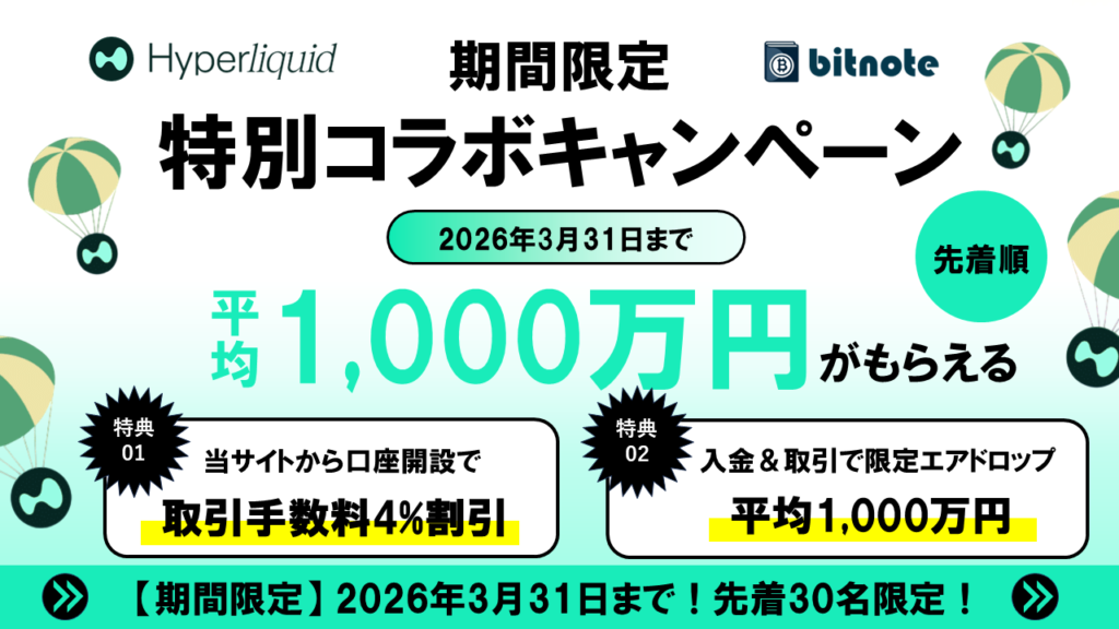 現在、当サイトとHyperliquidでコラボキャンペーンを開催中です!